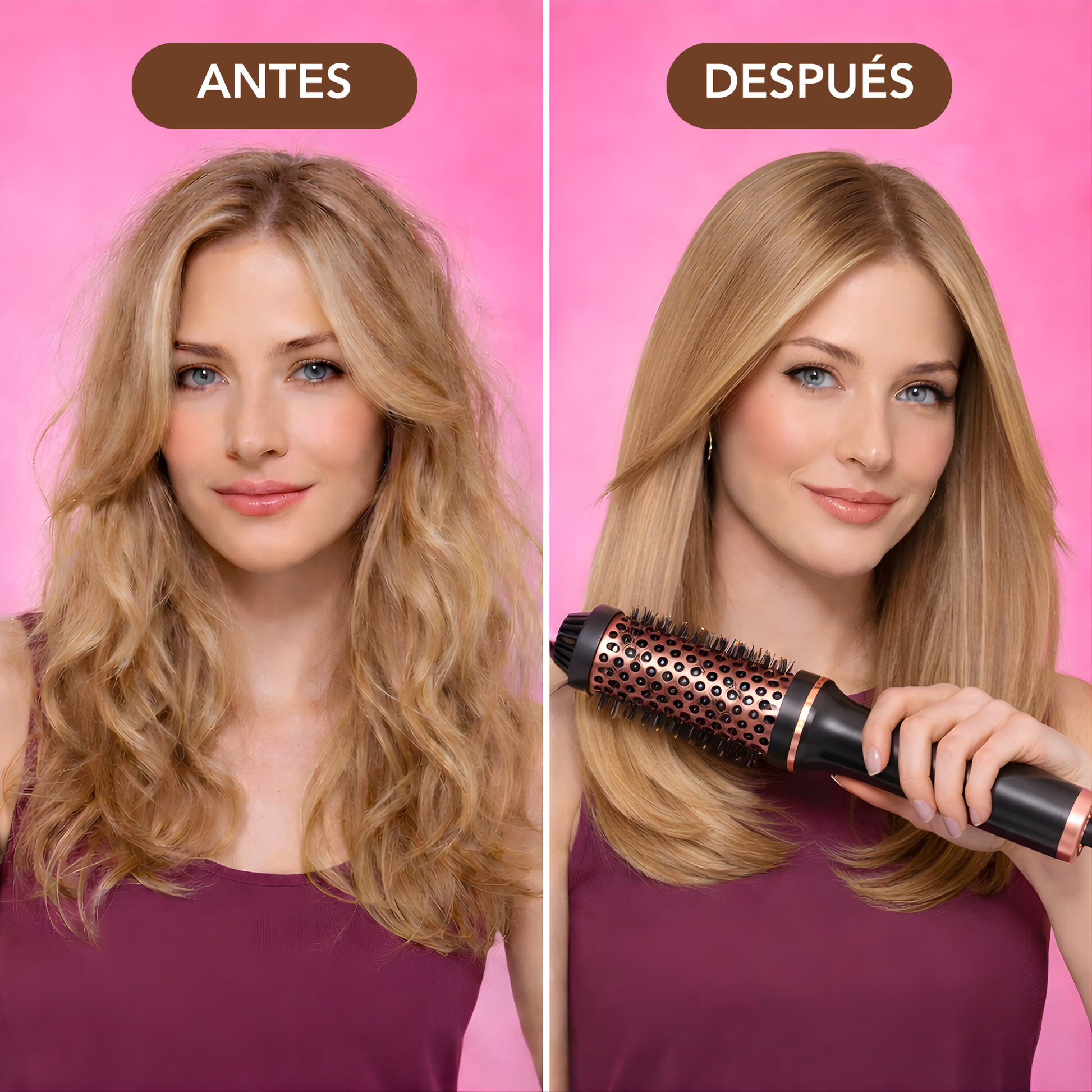 - 🔥 Protección anti-quemaduras gracias a sus cerdas de nylon anti-scald que cuidan tu cuero cabelludo y tus manos.